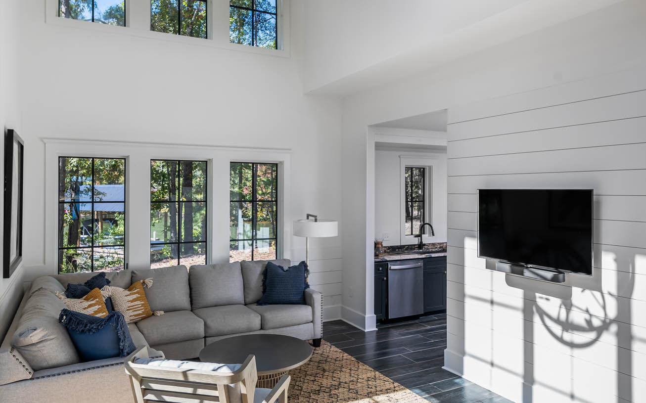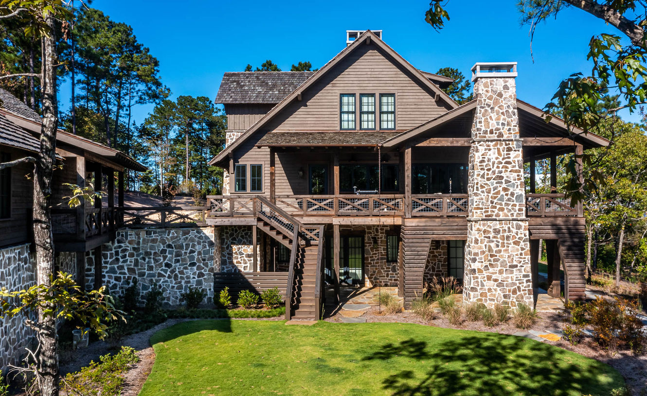 - Our clients were one of the first to purchase and complete a home in this development and are a case study of the initial elements of a Kennebec Design outlined in their guidelines. A spectacular property was selected that offered the opportunity to protect privacy from future homes by anticipating the location of the adjacent home building sites and planning for undisturbed tree buffers. The property had a natural peninsula that provided a destination to gather around a fire at sunset and a location for protected dock location from storms and boat traffic. We decided to position the house against the west property line -where the adjacent lot did not have enough building area - to claim the slough view and make the property look bigger than it is strictly by its boundaries. The property offered different types of views that change with the sun across big water to the east and a smaller slough view to the south. Our clients were one of the first to purchase and complete a home in this development and are a case study of the initial elements of a Kennebec Design outlined in their guidelines. A spectacular property was selected that offered the opportunity to protect their privacy from future homes by anticipating the location of the adjacent home-building sites and planning for undisturbed tree buffers. The property had a natural peninsula that provided a destination to gather around a fire at sunset and a location for a protected dock location from storms and boat traffic. We decided to position the house against the west property line — where the adjacent lot did not have enough building area — to claim the slough view and make the property look bigger than it is strictly by its boundaries. The property offered different views, changing with the sun across the big water to the east and a smaller slough view to the south. Exterior elements include a wrap-around porch, screened-in patio, and a magnificent dock, complete with a diving platform. Interior attractions include a massive central hall, attached loft, kitchen, and an eating space that opens to the lake and a bunkroom that sleeps 12 — A true transportation to the lake life.