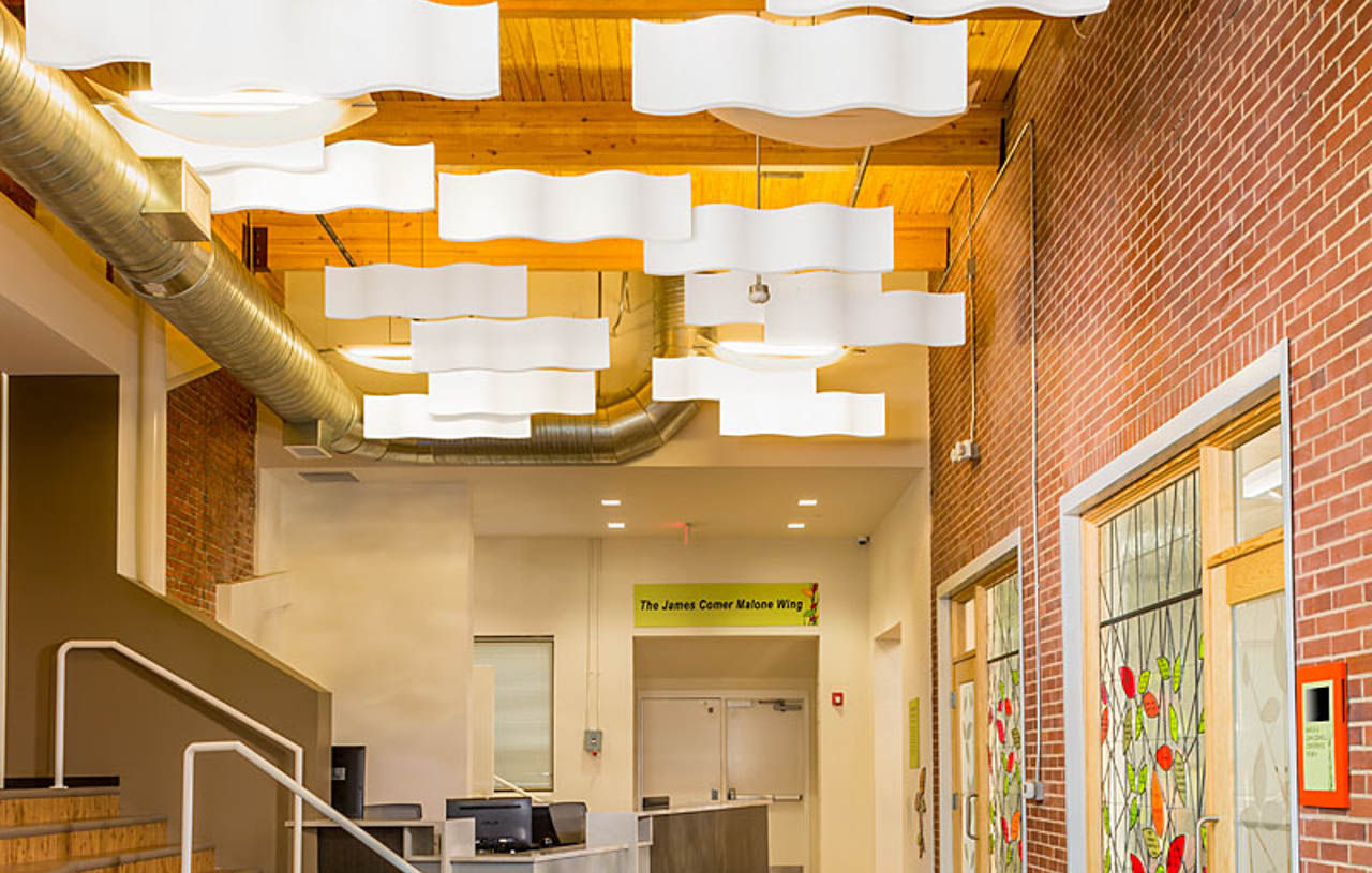- We converted a former Atlanta public school into a new business headquarters for a family focused non-profit organization. The project included full site work, construction of a new lobby and rear entry canopy, plus interior modifications including materials, structural, mechanical, electrical, plumbing, and room reconfiguration throughout. Our goal was to gain exposure for the entrance and create a lobby that can be a control point for the offices and the service areas and resolve some height differential between finished floors of the different building components while meeting ADA accessibility guidelines as well as life safety code requirements.